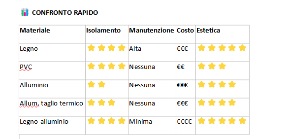 Differenze tra i principali materiali degli infissi (finestre e porte-finestre), con pro e contro per aiutarti a scegliere in base alle tue esigenze 👇